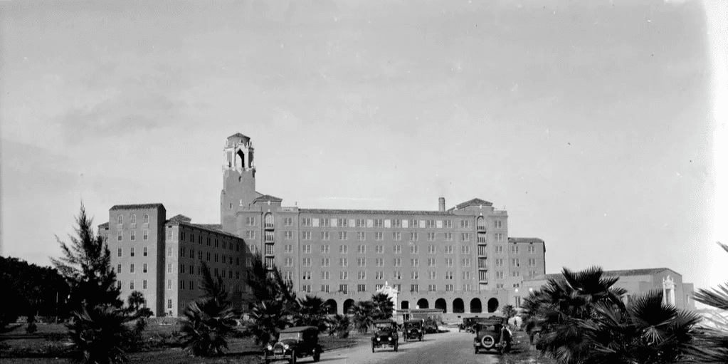 The Vinoy Park Hotel was built in 1925 by oil tycoon Aymer Vinoy Laughner. Construction began on February 5 and took 10 months to complete, with a grand opening on December 31. It was a seasonal hotel, open from around December to March.