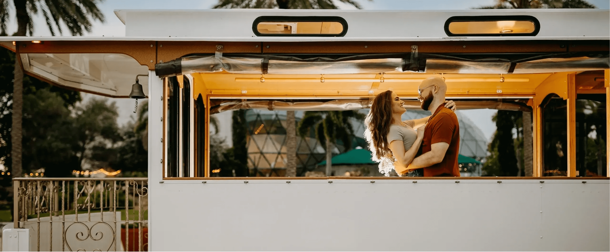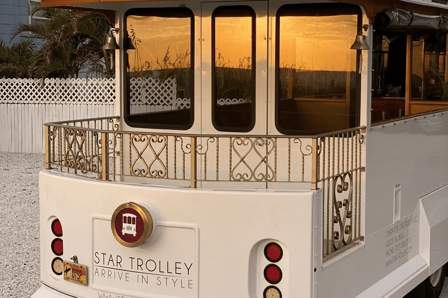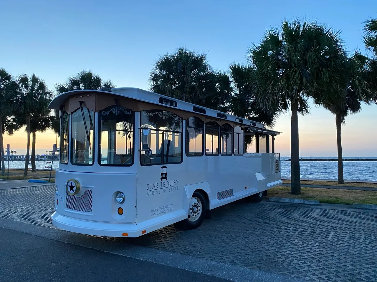 LARGE TROLLEY Our flagship vehicle Featuring oak benches, a combination of perimeter and row seating, and roll-up side windows, our trolley comfortably accommodates 30 passengers. Step Inside The balcony A top choice for photographers, this design provides the perfect backdrop for capturing stunning shots. open air or enclosed Equipped with air conditioning and the option to roll up the side curtains for an open-air experience. Clean. No ads. No clutter. Just class. You will never see any advertising or marketing on our trolleys. it's all in the details There’s still so much more to see Reserve your trolley today Arrive In Style® Large Trolley Rates & Availability Name Phone # (We will not call unless you ask)* Date of your event* Email Pick up zip code* How did you hear about us?* Get The Rates This site is protected by reCAPTCHA and the Google Privacy Policy and Terms of Service apply. Customer service is our top priority. We will ONLY contact you in the form you have requested Star Trolley® 2215 6th Avenue South, Saint Petersburg, Florida 33712 Hours Open today 09:00 am – 05:00 pm Mon 09:00 am – 05:00pmTue 09:00 am – 05:00pmWed 09:00 am – 05:00pmThu 09:00 am – 05:00pmFri 09:00 am – 05:00pmSat 09:00 am – 05:00pmSun 09:00 am – 05:00pm Instagram Facebook
