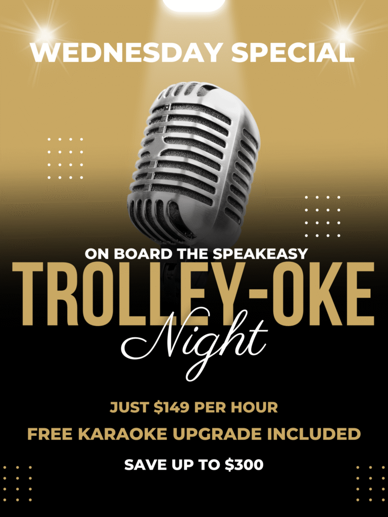 Celebrate the season with a unique twist! Whether you're planning an Ugly Sweater Party or a festive gathering with colleagues, our trolleys provide the perfect holiday charm. From our Speakeasy Mobile Lounge to custom onboard experiences with bartenders, comedians, or tour guides, we make your event one to remember. Let us handle the planning so you can enjoy the fun!
